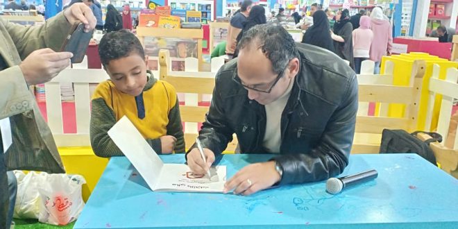 أقيمت اليوم على هامش فعاليات أنشطة الطفل باليوبيل الذهبى لمعرض القاهرة الدولى للكتاب ورشة حكى للأطفال مع الكاتب مصطفى غنايم