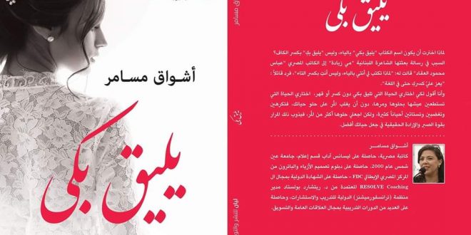 يشهد معرض القاهرة الدولي للكتاب فى دورته الحادية والخمسين المستمرة حتى ٤ فبراير؛ حفل توقيع كتاب “يليق بكي” للكاتبة أشواق مسامر، وذلك فى الثانية عشرة من ظهر السبت المقبل فى بلازا ١ .