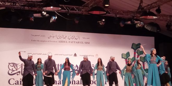 شهدت قاعة المسرح بمعرض القاهرة الدولي للكتاب الخميس، عروضا فنية راقصة لـ ا”لدبكه الفلسطينية”، وأغاني وطنية حماسية، التى ألهبت حماس الجمهور بالقاعة، قدمتها فرقة”الفالوجا” للفنون الشعبية الفلسطينية، وذلك ضمن فعاليات معرض القاهرة الدولي للكتاب في دورته الـ 51 .
