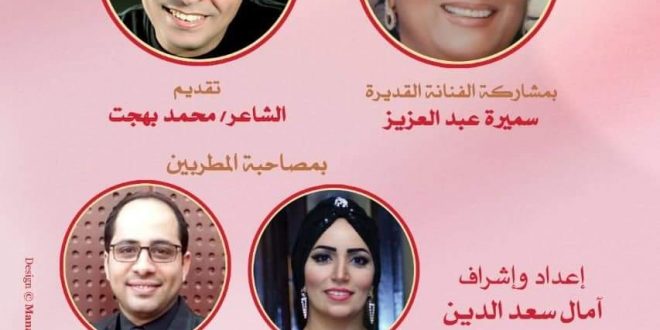 يعقد صالون مصر المبدعة، لقاءه الشهرى، بالتعاون مع دار الأوبرا المصرية، برئاسة الدكتور مجدى صابر، تحت عنوان “عن العشاق سألونى” فى تمام الساعة السابعة من مساء يوم الثلاثاء ٢٥ فبراير الجاري، على المسرح الصغير بدار الأوبرا .