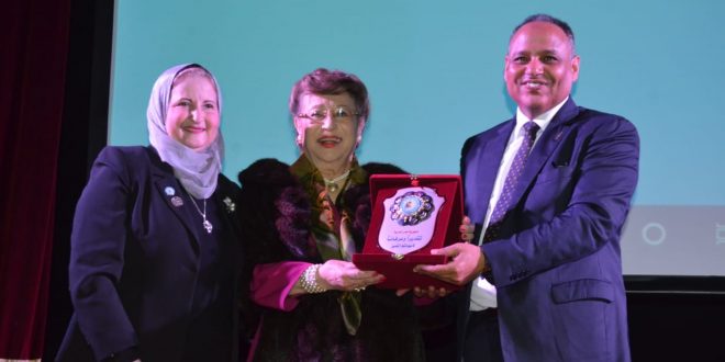 وفي نهاية المؤتمر سلمت د.نبيلة عبد المقصور دروع اللجنة الوطنية للمرأة لوزير التعليم العالي والبحث العلمي ورئيس الأكاديمية تقديراً للجهود المبذولة لتمكين المرأة في العلوم. وقامت الأكاديمية بتكريم بعض القيادات النسائية في التعليم العالى والبحث العلمى وهم د. نوال الدجوى، رئيس مجلس أمناء جامعة أكتوبر الحديثة للعلوم والاداب ود. وفاء قنديل، رئيس معهد تيودوربلهارس ود. نبيلة عبد المقصود، مقرر اللجنة القومية للمرأة.