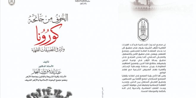 يطرح جناح الأزهر الشريف بمعرِض القاهرة الدوليّ للكتاب، في دورتة الـ52، كتاب «الخوف من جائحة كورونا وأثره في التطبيقات الفقهية»، بقلم الدكتور عبد الله النجار، عضو مجمع البحوث الإسلامية بالأزهر.