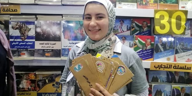 ما بين الأمل، والانتظار، والدعم النفسي.. أخذت أصالة الفرماوي توزّع خطابات على زوار معرض القاهرة الدولي للكتاب، مع ابتسامة واسعة.
