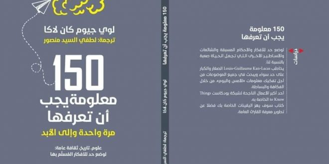 صدر حديثًا عن دار الكتب العلمية بالعراق، أحدث ترجمات الكاتب والمترجم المصري لطفي السيد منصور، تحت عنوان “150 معلومة يجب أن تعرفها”، والكتاب من تأليف لوي جيوم كان لاكا.