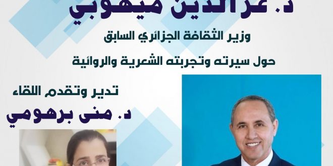 يستضيف بيت المثقفين العرب، في ندوة ثقافية مختلفة، الشاعر والروائي الكبير الدكتور عزالدين ميهوبي، وزير الثقافة الجزائري السابق.
