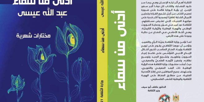 وتقع مختارات “أدنى من سماء” في 307 صفحات، وصدرت عن وزارة الثقافة الفلسطينية، بتصميم وإخراد فني: فاطمة حسين، ولوحة الغلاف: أليسيا عيسى.
