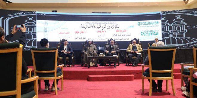 نظم جناح الأزهر بمعرض القاهرة الدولي للكتاب في دورته الـ 53 أمس الأحد، ندوة بعنوان «قضايا المرأة بين الشرع الحنيف والعادات الموروثة»، شارك فيها الدكتور عباس شومان، وكيل الأزهر الأسبق، والدكتور شكري عبدالعظيم، نائب مدير المركز الدولي الإسلامي للدراسات والبحوث السكانية، والدكتور سمير بو دينار، المدير التنفيذي لمركز الحكماء لبحوث السلام بالمغرب، وأدارها الإعلامي محمد الديسطي، عضو المركز الإعلامي بمشيخة الأزهر الشريف.