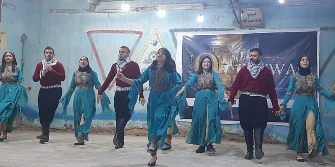 قدمت فرقة الفلوجة الفلسطينية بجمعية منشية النوبة مجموعة من الاستعراضات الفنية، ضمن فعاليات مهرجان أسوان الدولى التاسع للثقافة والفنون، والذى يختتم فعالياته باحتفال فنى بتعامد الشمس على وجه تمثال الملك رمسيس الثانى يومك 22 من فبراير الحالي.