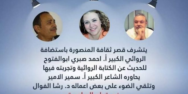 تقام الندوة في تمام السادسة من مساء غد الأحد في مقر قصر ثقافة المنصورة.