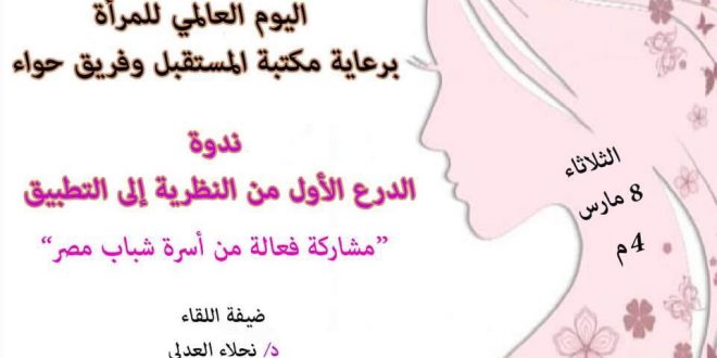 تشارك جمعية مصر الجديدة ، برئاسة الدكتور نبيل حلمى المجتمع الدولى احتفاله باليوم العالمي للمرأة الذي يصادف اليوم الثلاثاء الثامن من مارس من كل عام.
