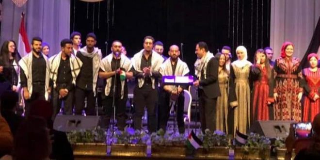 إلى جانب تابلوهات من الدبكة الفلسطينية لفرقة الفالوجا للفنون الشعبية.