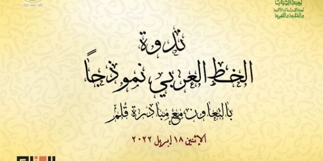 تحت رعاية الدكتورة إيناس عبد الدايم وزيرة الثقافة؛ والدكتور هشام عزمي الأمين العام للمجلس الأعلى للثقافة؛ تنظم كل من لجنة الشباب ومقررتها الدكتورة منى الحديدي، ولجنة الدراسات الأدبية والنقدية واللغوية ومقررها الدكتور عبدالرحيم الكردي، وبالتعاون مع مبادرة قلم، ندوة “الخط العربي نموذجا” بمناسبة الاحتفال باليوم العالمي للتراث وذلك في تمام الثامنة مساء يوم الإثنين الموافق 18 أبريل الحالي بقاعة الفنون بالمجلس الأعلى للثقافة .