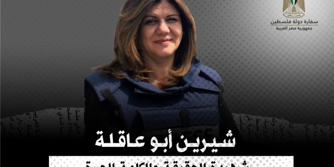 تستمر سفارة دولة فلسطين بمصر في مقرها بالقاهرة ، غدا الإثنين ، في استقبال المعزّين في الشهيدة الصحفية شيرين أبو عاقلة والتي استشهدت في مخيم جنين، يوم الأربعاء، بعد أن استهدفتها قوات الإحتلال الإسرائيلي برصاصة في الرأس.