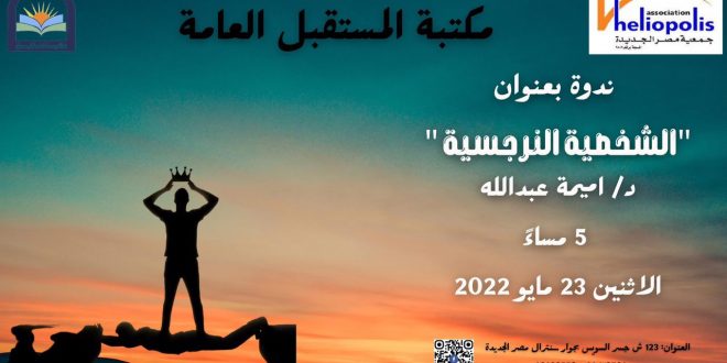 من منطلق دورها المجتمعى والاهتمام بكل مايخص أفراد المجتمع المصرى ، تنظم جمعية مصر الجديدة برئاسة الدكتور نبيل حلمى سلسلة من الندوت المتعلقة بالصحة النفسية تبدأها بندوة ” الشخصية النرجسية “.