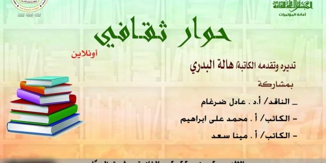 ينظم المجلس الأعلى للثقافة حوارًا ثقافيًّا،  أونلاين على تطبيق زوم، وذلك في الساعة الثانية عشرة ظهر غد الإثنين 20 يونيو.