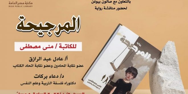 تستضيف مكتبة مصر العامة بالتعاون مع صالون بيوفن ندوة لمناقشة رواية “المرجيحة” للكاتبة منى مصطفى، وذلك في الخامسة مساء يوم السبت الموافق 6 أغسطس.