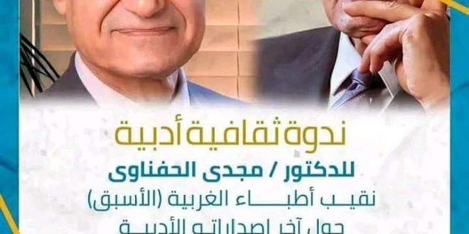 يقام في السابعة مساء الأربعاء المقبل، ندوة لمناقشة كتاب “حفناويات وإبيجرامات”، للدكتور مجدي الحفناوي، نقيب أطباء الغربية الأسبق.