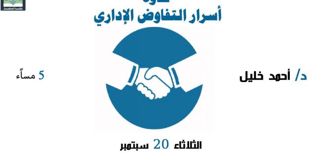 تشهد مكتبة المستقبل غدا الثلاثاء ندوة بعنوان "أسرار التفاوض الإداري" ، وذلك فى الخامسة مساء بمقرها بجسر السويس. يحاضر في الندوة الدكتور أحمد خليل الخبير الاستراتيجي في إدارة الأعمال .