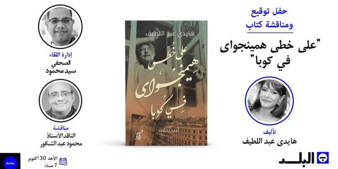 تستضيف مكتبة البلد الكاتبة: هايدي عبد اللطيف، لمناقشة وتوقيع كتابها “على خطى همينجواي في كوبا” الصادر عن دار آفاق للنشر، يناقشها الناقد: محمود عبد الشكور، ويدير اللقاء الصحفي: سيد محمود. وذلك يوم الأحد الموافق ٣٠ أكتوبر الساعة ٧ مساءً.
