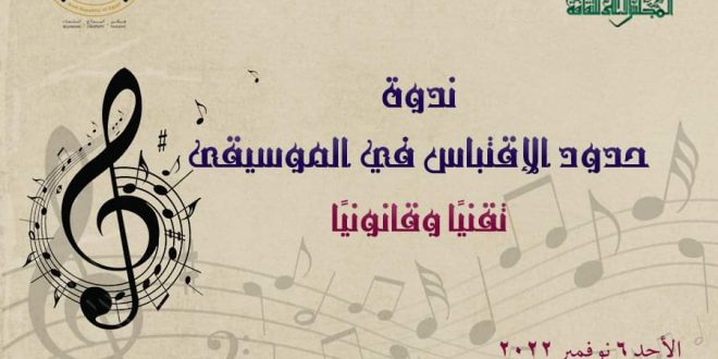 تحت رعاية الدكتورة نيفين الكيلانى وزيرة الثقافة؛ وبأمانة الدكتور هشام عزمي الأمين العام للمجلس الأعلى للثقافة؛ والكاتب محمد ناصف رئس الإدارة المركزية للشعب واللجان الثقافية، تعقد ندوة: “حدود الاقتباس في الموسيقى تقنيًا وقانونًيا”.
