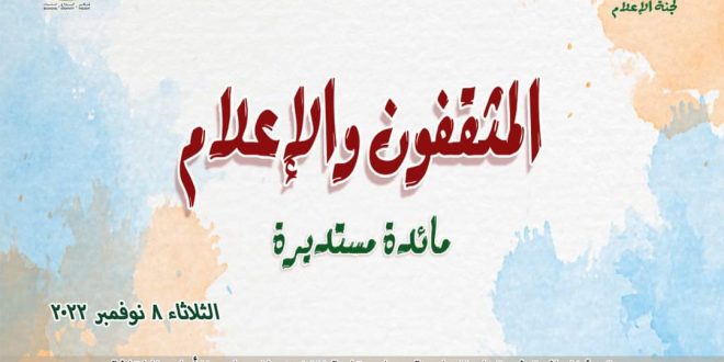 تنظم لجنة الإعلام بالمجلس الأعلى للثقافة ومقررها الدكتور جمال الشاعر، مائدة مستديرة بعنوان “المثقفون والإعلام”، وذلك في السادسة من مساء غد الثلاثاء الموافق ٨ نوفمبر الحالي بقاعة الفنون بالمجلس الأعلى للثقافة.