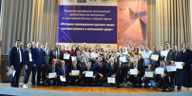 على مدار أسبوع عُقد مؤتمر اساتذة اللغة الروسية بالشرق الأوسط وشمال افريقيا بعنوان “مناهج تدريس اللغة الروسية كلغة أجنبية لغير الناطقين بها” بالبيت الروسي بالقاهرة.