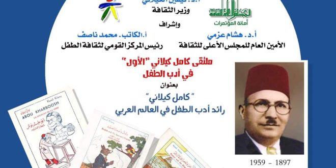 تحت رعاية الدكتورة نيفين الكيلاني وزيرة الثقافة، وبأمانة هشام عزمي، والكاتب المسرحي محمد عبد الحافظ رئيس المركز القومي لثقافة الطفل؛ ينظم المركز القومى لثقافة الطفل والتابع للمجلس الأعلى للثقافة “ملتقى كامل كيلاني الأول لأدب الطفل”؛ وذلك في تمام الساعة الحادية عشرة من صباح يوم الأحد الموافق 18 ديسمبر الحالي بقاعة المجلس الأعلى للثقافة.