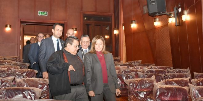 حيث قامت وزيرة الثقافة يرافقها الفنان خالد جلال رئيس قطاع الإنتاج الثقافي وقيادات الشركة المنفذة للمشروع، بتفقد المبنى المكون من خمس طوابق على مساحة ٩٢٥ متر مربع،و يضم صالة عرض رئيسية مقسمة إلى صالة أرضي وبلكون علوي ويبلغ عدد مقاعدها 360 مقعد ، بالاضافة إلى خشبة مسرح على مساحة 245 متر مربع مجهزة بأحدث التقنيات الفنية الخاصة بإدارة خشبة المسرح،الى جانب قاعة العرض الصغرى والتي تسع ل 120 مقعد، و16 غرفة للفنانين .