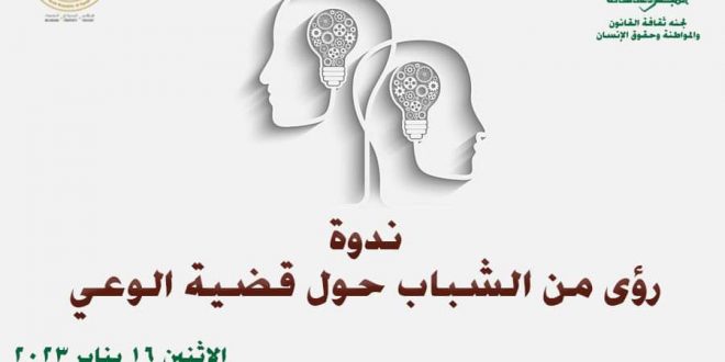 تحت رعاية الدكتورة نيفين الكيلانى وزيرة الثقافة؛ وبأمانة الدكتور هشام عزمي، والكاتب محمد ناصف رئيس الإدارة المركزية للشعب واللجان الثقافية ، يعقد المجلس الأعلى للثقافة، ندوة ” رؤي من الشباب حول قضية الوعى ” ؛ والتي تنظمها لجنة ثقافة القانون والمواطنة وحقوق الإنسان بالتعاون مع لجنة الشباب، وذلك في تمام الساعة الخامسة مساء يوم الاثنين القادم الموافق 16 يناير الحالي بقاعة المؤتمرات بالمجلس الأعلى للثقافة.