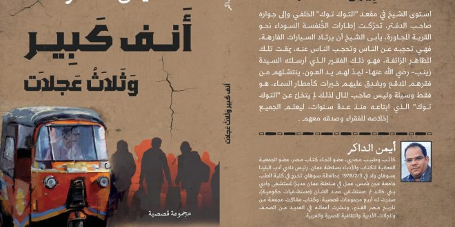 تصدر قريبا بمعرض القاهرة الدولي للكتاب، المجموعة القصصية “أنف كبير وثلاث عجلات”، للدكتور أيمن الداكر، عن دار أفلاك للنشر والتوزيع.