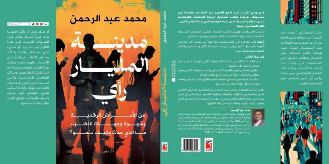 صدر حديثا كتاب “مدينة المليار رأي” للكاتب محمد عبد الرحمن، عن دار “دوّن” للنشر والتوزيع، وذلك بالتزامن مع معرض القاهرة الدولي للكتاب في دورته الـ 54، المقرر انعقادها في الفترة من 25 يناير الحالي وحتى 6 فبراير المقبل.