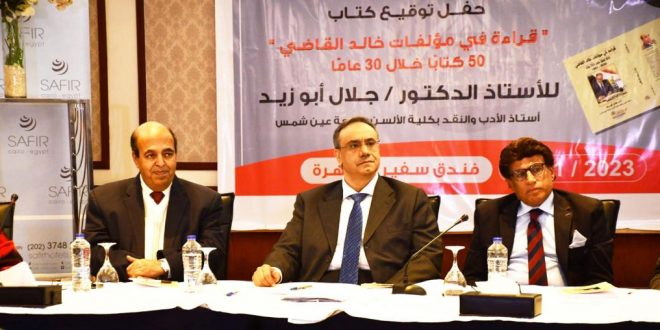 نظمت دار الأهرام للإصدارات القانونية مؤخرا حفل إطلاق كتاب ” قراءة في مؤلفات خالد القاضي – خمسين كتابا خلال ثلاثين عاما ١٩٩٢ – ٢٠٢٢ ” للدكتور جلال أبوزيد ، أستاذ الأدب والنقد بكلية الألسن ، جامعة عين شمس ، وذلك في أحد فنادق القاهرة ، متزامنا مع الدورة ٥٤ لمعرض القاهرة الدولي للكتاب ، وترأس جلستها النقاشية الكاتب الصحفي صبري سعيد وقدمتها الإعلامية مونيكا مجدي .