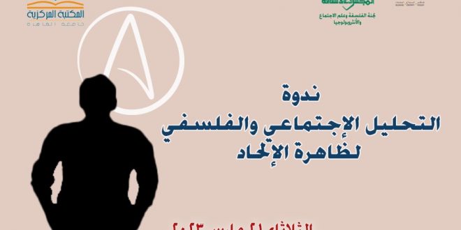 تحت رعاية الأستاذ الدكتور هشام عزمي الأمين العام للمجلس الأعلى للثقافة؛ والكاتب محمد عبد الحافظ ناصف رئيس الإدارة المركزية للشعب واللجان الثقافية، ينظم المجلس الأعلى للثقافة، ندوة “التحليل الإجتماعى والفلسفي لظاهرة الإلحاد”؛ والتي تنظمها لجنة الفلسفة وعلم الاجتماع والأنثربولوجيا بالمجلس، وذلك في تمام الثانيه عشر ظهرًا يوم الثلاثاء الموافق 21 مارس الحالي (بالمكتبه المركزيه – جامعة القاهرة).