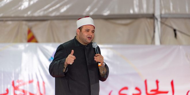 ومن جانبه قال الشيخ حازم جلال، إمام وخطيب مسجد الحمد بالقاهرة، إن الاسلام دين لا يعرف التطرف، ولا العصبية، ولا الجاهلية، فهو السلام، مشتق من اسم الله السلام، وكلمه سلام وردت في ٩٠ موضوع في القرآن الكريم، بينما وردت كلمة حرب ٤ مرات.