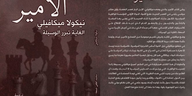 أصدرت دار أم الدنيا للدراسات والنشر والتوزيع في مصر، طبعة جديدة من كتاب نيكولا ميكافيلي “الأمير”، ترجمة محمد لطفي جمعة، ليكون متاحا لجمهور معرض القاهرة الدولي للكتاب خلال يناير المقبل.