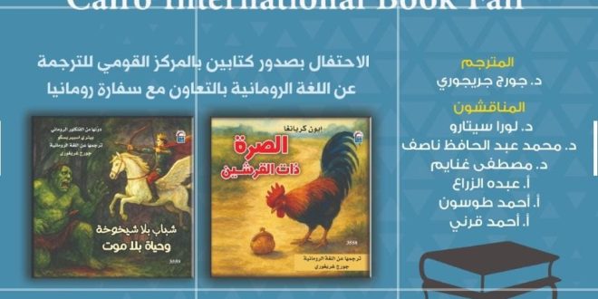 يشهد معرض القاهرة الدولي للكتاب مساء اليوم الخميس ٢٩ يناير ٢٠٢٦ احتفالًا ثقافيًا مميزًا بصدور كتابين مترجمين عن اللغة الرومانية، صادرين عن المركز القومي للترجمة برئاسة الأستاذة الدكتورة رشا صالح، وذلك في تمام الساعة السادسة مساءً بقاعة ضيف الشرف.