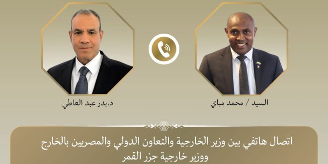 تلقى الدكتور بدر عبد العاطي وزير الخارجية والتعاون الدولي والمصريين بالخارج، اتصالاً هاتفياً من محمد مباي وزير خارجية جزر القمر.