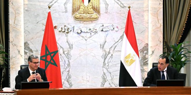 وقال السيد/ عزيز أخنوش إن مفتاح التكامل الاقتصادي المنشود بين البلدين، والقائم على “الربح المشترك”، يكمن في توسيع آفاق التعاون لتشمل عدة مجالات، من بينها تطوير الربط اللوجستي والملاحي المباشر بين موانئنا المحورية، وبالأخص الربط بين ميناء طنجة المتوسط وشرق بورسعيد ومحور قناة السويس، مما سيجعل من بلدينا منصة واحدة متكاملة، ومنطلقا مشتركا للدخول إلى الأسواق الأفريقية والأوروبية والآسيوية، بجانب تحقيق التكامل الصناعي، من خلال التركيز على صناعات التكامل المتاحة في البلدين؛ للاستفادة من المزايا التنافسية لكليهما.