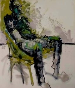 لا بوصفه وضعية يومية عابرة، بل كحالة وجودية وتشكيلية تُعاد قراءتها عبر وسائط لونية وبصرية متعددة، تكشف عن عمق العلاقة بين الجسد والكرسي، بين الإنسان وفضائه، وبين السكون وما ينطوي عليه من توتر خفي.