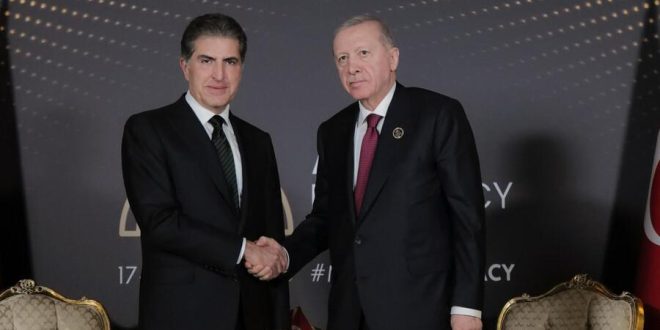 فيما شكر نيجيرفان بارزاني الرئيس التركي على قيادته ومساعيه المتواصلة من أجل تهدئة التوترات وحماية الأمن والأمان في المنطقة.