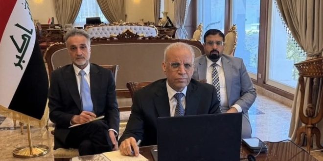 جاء ذلك خلال ترؤس الدكتور قحطان طه خلف، اليوم الثلاثاء وفد جمهورية العراق في اجتماع الدورة غير العادية على مستوى وزراء الخارجية العرب، الذي عُقد عبر تقنية الاتصال المرئي، لبحث تطورات الأوضاع في المنطقة.