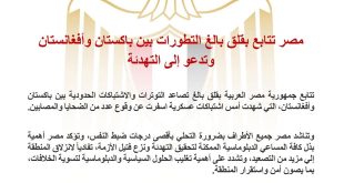 أكمل القراءة »مصر تدعو باكستان وأفغانستان للتهدئة وضبط النفس