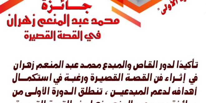 انطلقت أمس الدورة الأولى من جائزة القاص الراحل محمد عبدالمنعم زهران في القصة القصيرة. وفي تصريح لها، تقول الكاتبة الصحفية والقاصة سمية عبدالمنعم، زوجة الكاتب محمد عبد المنعم زهران، إن الجائزة تأتي دعما للمبدعين على اختلاف أعمارهم، وهو ما يعد امتدادا لهدف طالما سعى زهران لتحقيقه والعمل عليه في حياته. …
