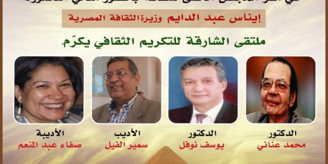 تحت رعاية صاحب السمو الشيخ الدكتور سلطان بن محمد القاسمي عضو المجلس الأعلى حاكم الشارقة؛ وبحضور ورعاية الدكتورة إيناس عبد الدايم وزيرة الثقافة المصرية، يستضيف المجلس الأعلى للثقافة بأمانة الدكتور هشام عزمي؛ حفل التكريم الذي يقيمه ملتقى الشارقة للتكريم الثقافي؛ للدكتور محمد عناني، والدكتور يوسف نوفل، والأديب سمير الفيل، والأديبة …
