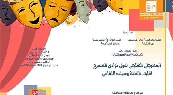 انطلقت فعاليات المهرجان الإقليمي لفرق نوادي المسرح لإقليم القناة وسيناء الثقافي برئاسة الكاتب محمد نبيل مساء أمس والذي يضم خمسة عشر عرضا مسرحيا للشباب من محافظات الاسماعيلية وبورسعيد والسويس وشمال سيناء بحضور لجنة تحكيم متخصصة في مجال المسرح وهم إبراهيم المهدي ، أحمد زيدان ، أحمد عبد الرحمن ليتم إختيار …