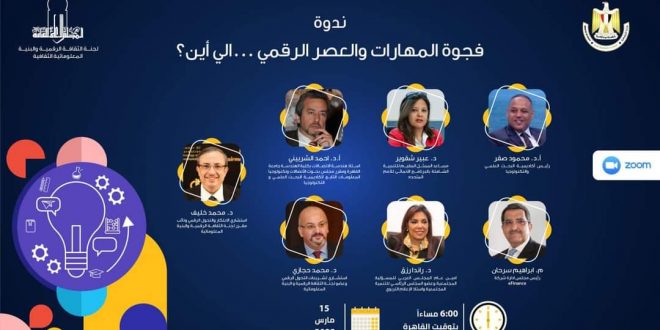 تحت رعاية الدكتورة إيناس عبد الدايم وزيرة الثقافة، والدكتور هشام عزمي الأمين العام للمجلس الأعلى للثقافة، تعقد لجنة الثقافة الرقمية والبنية المعلوماتية الثقافية بالمجلس ومقررها المهندس زياد عبد التواب، ندوة “فجوة المهارات والعصر الرقمي ….إلى أين”، وذلك في تمام السادسة من مساء الثلاثاء الموافق 15 مارس الحالي أونلاين عبر تطبيق …