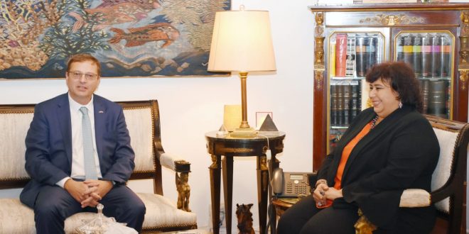 استقبلت الفنانة الدكتورة إيناس عبد الدايم وزيرة الثقافة، جاك فوليك سفير جمهورية التشيك بالقاهرة ووفد يضم كلا من أوندريخ تشيرني المدير العام للمراكز التشيكية، جان بوندي مدير إدارة الدبلوماسية العامة بوزارة الخارجية التشيكية وأولدريخ فوندروشكا الدبلوماسي المتخصص بالعلاقات الثقافية بسفارة الجمهورية التشيكية بالقاهرة، حيث تناول اللقاء بحث سبل دعم وتعزيز …