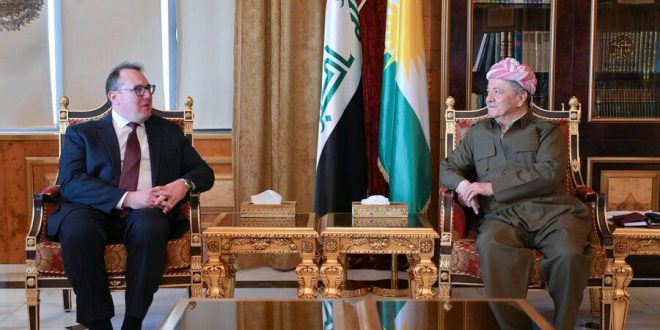 استقبل الزعيم الكردي مسعود بارزاني، اليوم الأربعاء، في بیرمام، القائم بأعمال السفارة الأمريكية لدى العراق، جوشوا هاريس. وخلال اللقاء، أكد القائم بأعمال السفارة الأمريكية على دعم الولايات المتحدة لإقليم كوردستان ضمن إطار العراق، مشيراً إلى أن بلاده تنظر باحترام وتقدير إلى دور بارزاني في العملية السياسية العراقية منذ عام 2003 …
