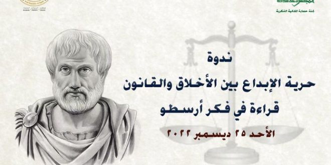 تحت رعاية الدكتورة نفين الكيلانى وزيرة الثقافة؛ وبأمانة الدكتور هشام عزمي؛ والكاتب محمد ناصف رئيس الإدارة المركزية للشعب واللجان الثقافية، يعقد المجلس الأعلى للثقافة، ندوة بعنوان “حرية الإبداع بين الأخلاق و القانون: قراءة في فكر أرسطو”. الندوة تنظمها لجنة حماية الملكية الفكرية بالمجلس ومقررها الدكتور حسام لطفي؛ وذلك في تمام …