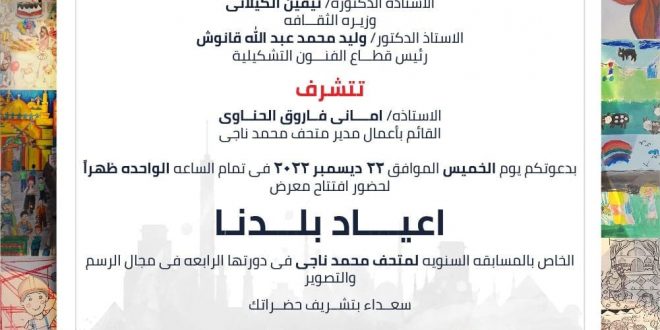 تحت رعاية ا.د. وليد قانوش رئيس قطاع الفنون التشكيلية، يفتتح متحف محمد ناجي معرض مسابقة “أعياد بلدنا” في دورتها الرابعة وذلك يوم الخميس 22 ديسمبر في تمام الساعة الواحدة ظهراً. وقالت أماني الحناوي القائم بأعمال مدير متحف محمد ناجي: تُقام المسابقة بشكل سنوي في مجالي الرسم والتصوير، وكان قد تقدم …